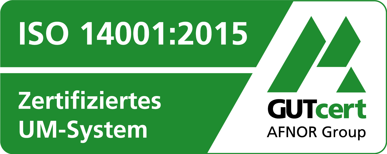 Wir handeln umweltbewusst: Dem wachsenden Stellenwert des Umweltschutzes und unserer Verantwortung gegenüber kommenden Generationen tragen wir Rechnung. Seit dem 24. September 2025 sind wir zertifiziert nach den Anforderungen des Umweltmanagementsystems (UMS) DIN EN ISO 14001:2015.